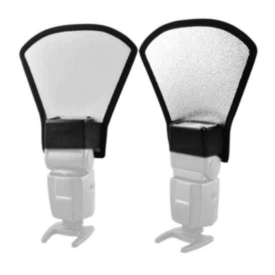 一些反光卡附在专业相机镜头的闪光灯上,以漫射相机闪光灯的光线。此卡片会从您的设备上方向主体上喷射较柔和的光线 - 而不是直线 - 因此您在拍摄的物体后面没有长长的阴影痕迹。请参阅下面这个项目的两个版本 - 白色(左)和箔(右)屏幕都可以漫射闪光灯。