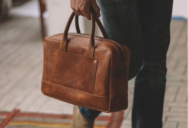 以下是在自然光下拍摄的吸引人的产品照片。从左边进入的太阳完美地照亮了公文包,同时在男人的腿上投下一个柔和的阴影来强调产品。